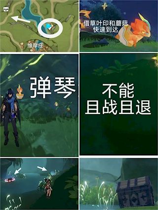 传送到维摩庄锚点,然后往图示宝箱标记位置跑去,沿途有草叶印辅助爬图。